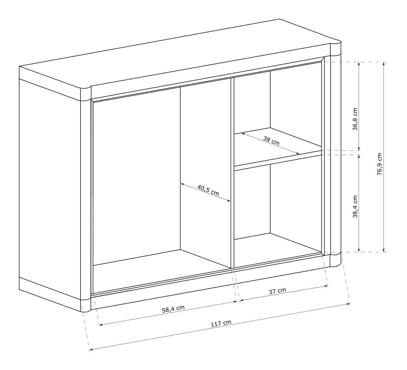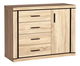 ZobrazitKomoda pocházející z kolekce Douglas. Je velká, vejde se do ní množství oblečení a doplňků při zachování elegance. Černé vložky ve formě lamel dodávají jedinečný charakter. Komoda má čtyři zásuvky a jednu skříňku, za kterou je police, umožňuje rozumné využití prostoru.