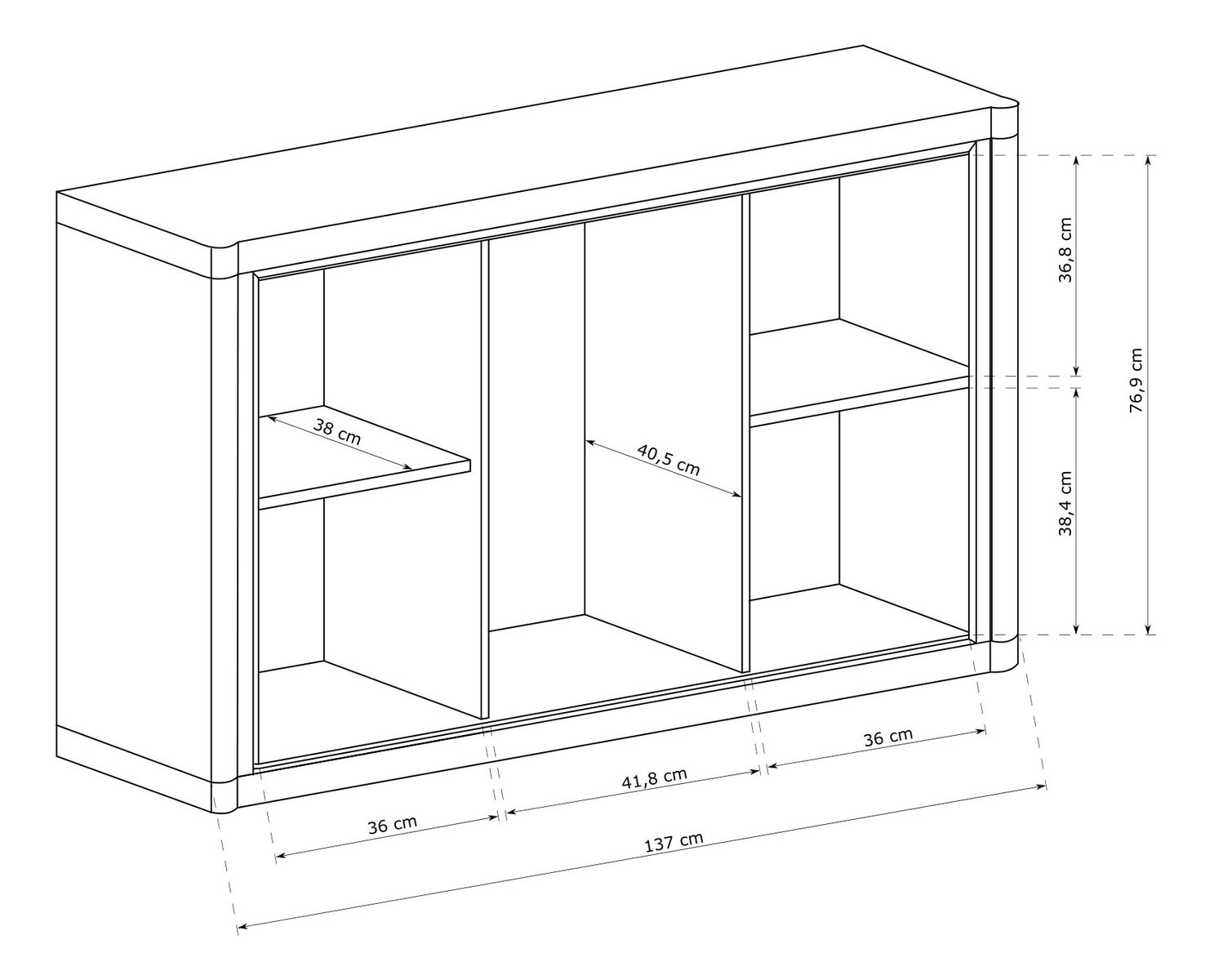 ZobrazitProstorná komoda z kolekce Douglas, která vám usnadní každodenní organizaci. Komoda má čtyři velké šuplíky a dvě skříňky po jedné polici, které rozdělují obrovský prostor a umožňují jeho rozvoj. Nábytek je zdoben černými vložkami ve formě lamel, dodávají spoustu elegance a zavádějí originální dekor. Kovové úchyty dokonale ladí s lamelami, spolu vytvářejí zajímavou kombinaci, která mnohé překvapí. Komoda se hodí do obývacího pokoje, ložnice, ale také do kanceláře či pracovny.
