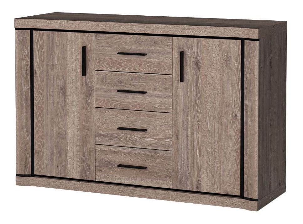 ZobrazitProstorná komoda z kolekce Douglas, která vám usnadní každodenní organizaci. Komoda má čtyři velké šuplíky a dvě skříňky po jedné polici, které rozdělují obrovský prostor a umožňují jeho rozvoj. Nábytek je zdoben černými vložkami ve formě lamel, dodávají spoustu elegance a zavádějí originální dekor. Kovové úchyty dokonale ladí s lamelami, spolu vytvářejí zajímavou kombinaci, která mnohé překvapí. Komoda se hodí do obývacího pokoje, ložnice, ale také do kanceláře či pracovny.