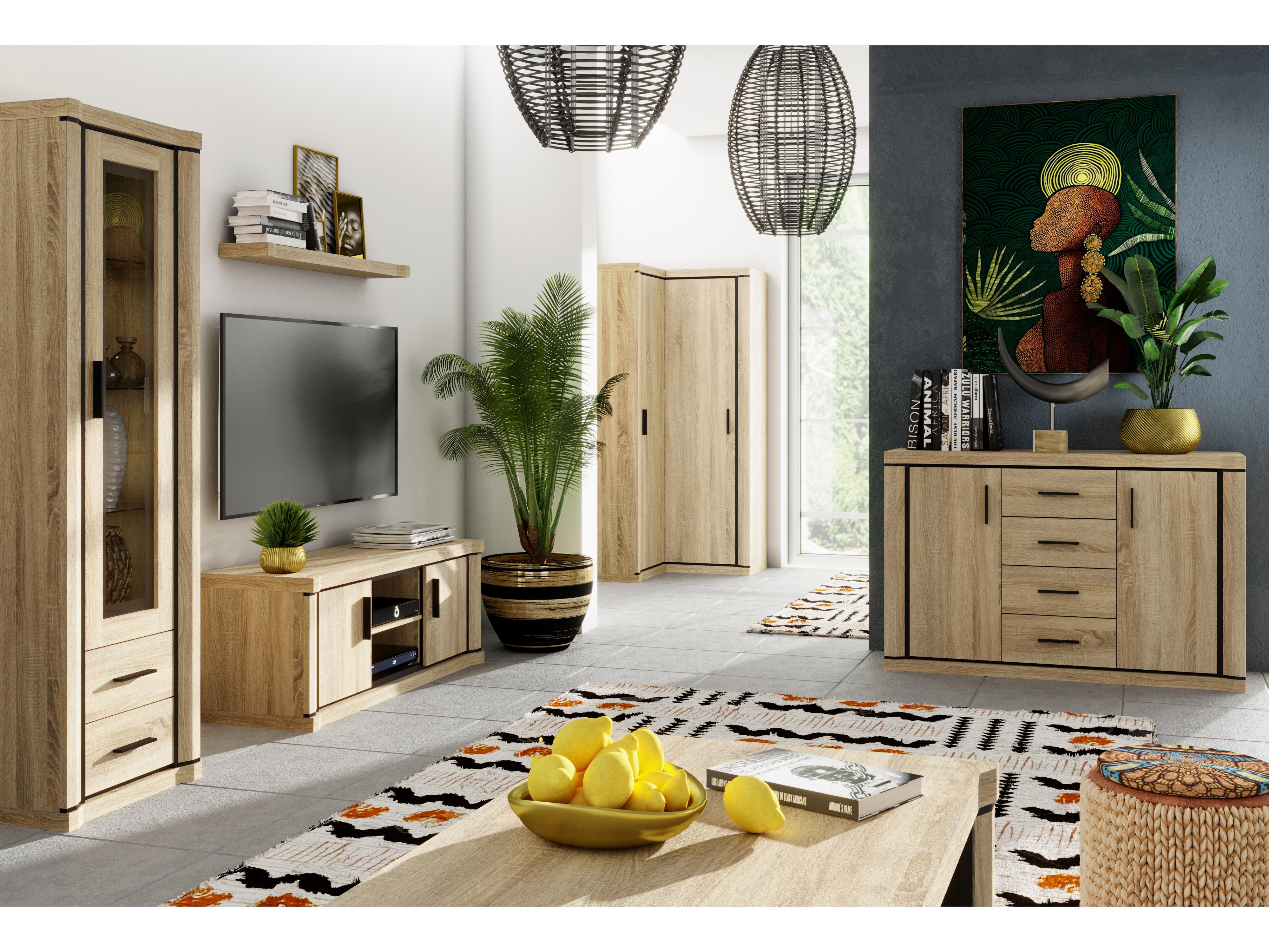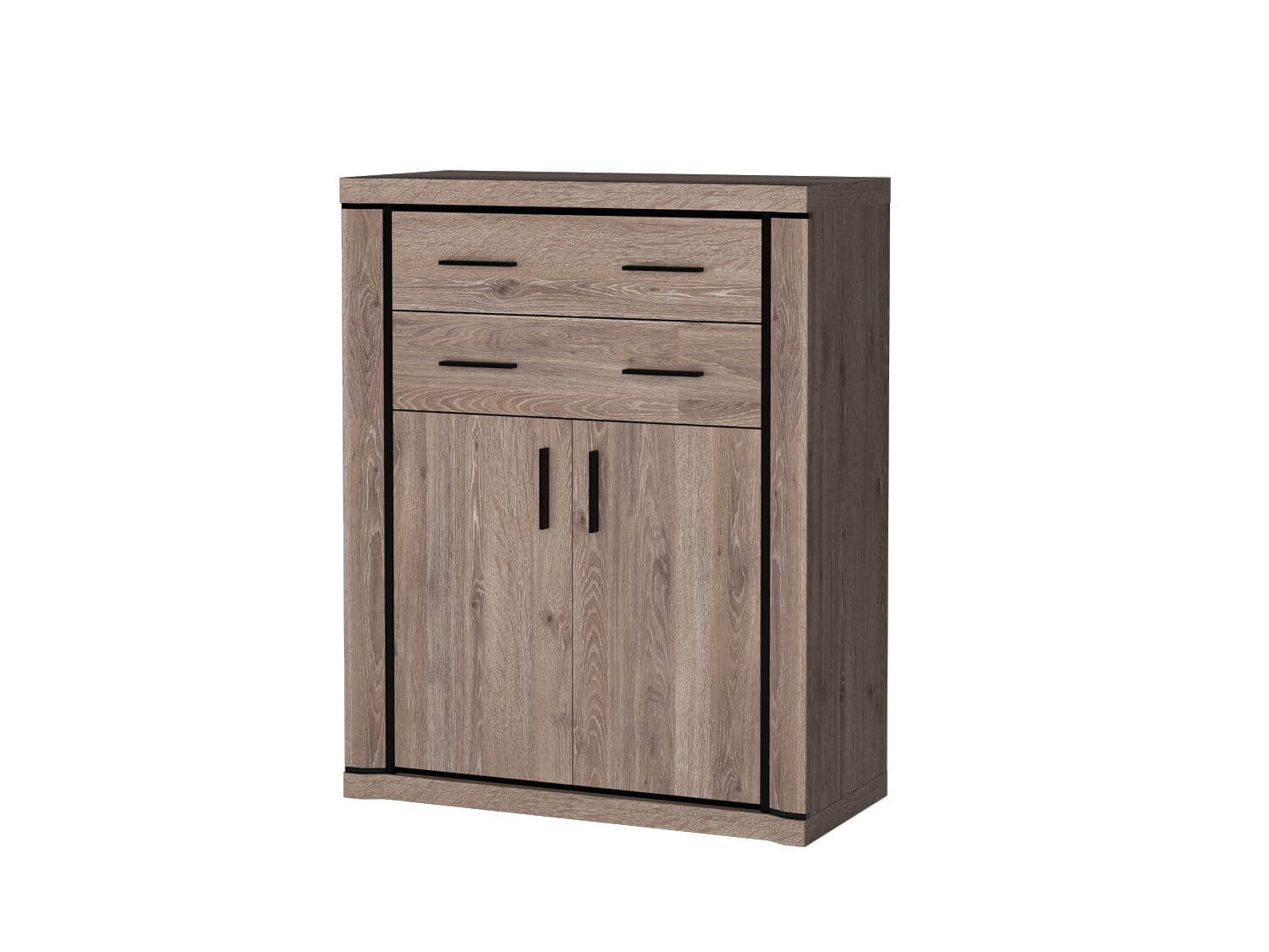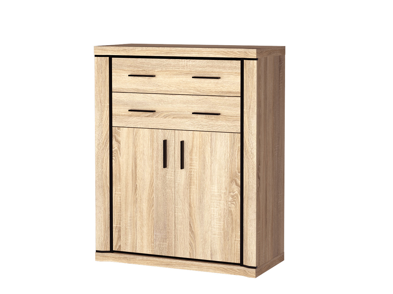 Vysoká komoda z kolekce Douglas se dvěma velkými šuplíky a jednou spojenou skříňkou, za kterou se nachází prostorná police dělící prostor na polovinu, je jako stvořená pro organizaci. Své oblečení a různé doplňky si díky ní naaranžujete mnoha způsoby. Černé vsadky v podobě lamel bourají standardy, jsou originální a dodávají silnější akcent. Černé rukojeti se k nim skvěle hodí. Komoda vám dává možnost vytvořit spoustu aranžmá. Samostatně nebo v setu bude vypadat úchvatně.