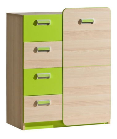 Sektorová sestava svým designem vhodná do dětských a studentských pokojů. Veselá kombinace světlé barvy dřeva jasan je kombinovaná fialovou nebo zelenou barvou a rozjasní každý prostor. V sektoru se nachází množství prvků, ze kterých si hravě poskládáte pokoj podle Vašich představ. Materiál použitý na výrobu je laminovaná DTD. Hrany jsou ukončeny ABS úpravou, která zvyšuje odolnost vůči mechanickému poškození, udržuje barevnou stálost a odolnost proti vlhkosti.