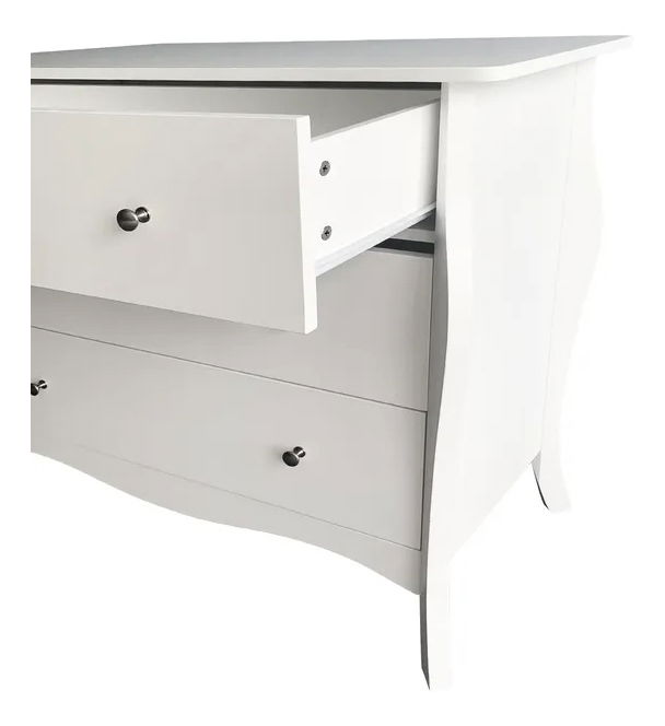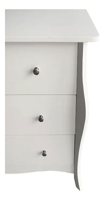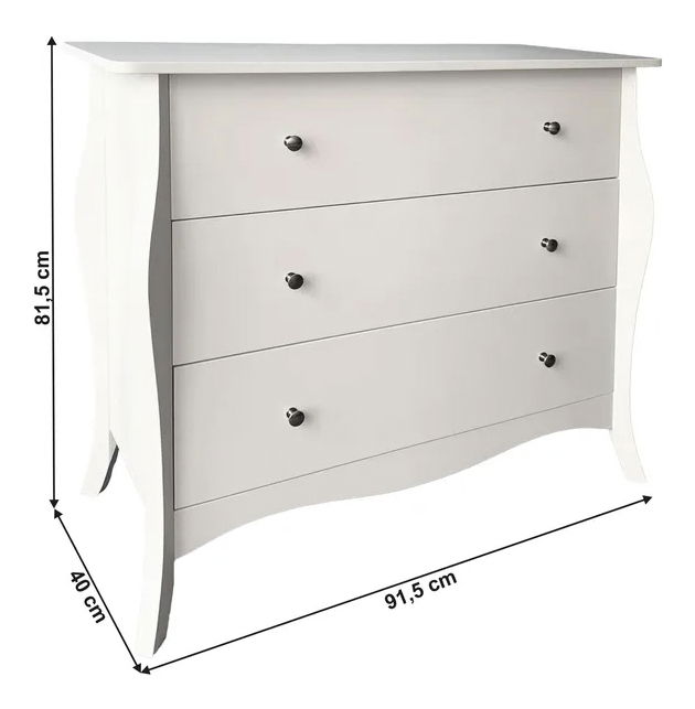 Jedinečná a stylová komoda Eleonor v romantickém barokním stylu je ideálním doplňkem do vašeho domova. Tato komoda je vyrobena z kvalitního MDF materiálu v trvanlivém bílém barevném provedení. S její výškou 81,5 cm, šířkou 91,5 cm a hloubkou 40 cm poskytuje dostatek úložného prostoru ve formě tří stejných velkých šuplíků. Šuplíky jsou snadno otevíratelné díky kovovým úchytům. Komoda má také čtyři elegantně tvarované nožičky, které dodávají celému kusu nábytku šarm a eleganci. Vytvořte si příjemné a harmonické prostředí ve vaší domácnosti s komodou Eleonor, která dokonale doplní váš interiér a potěší vašeho ducha.