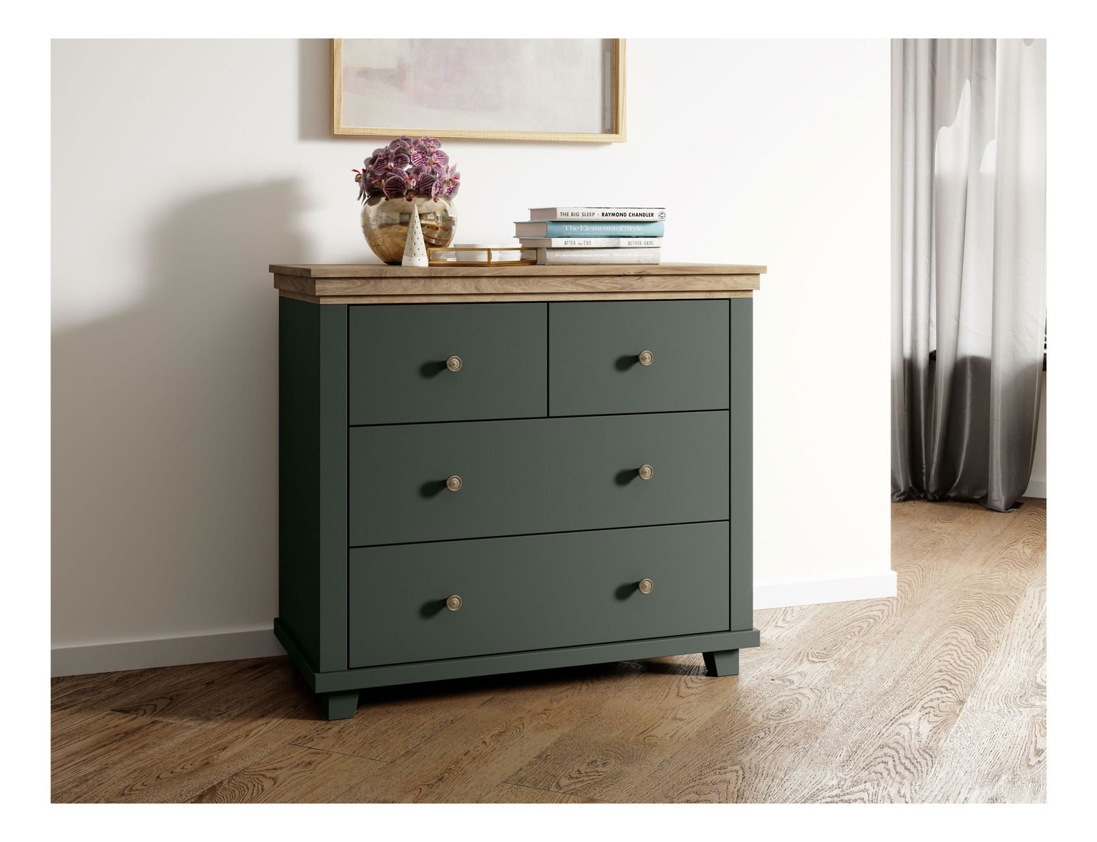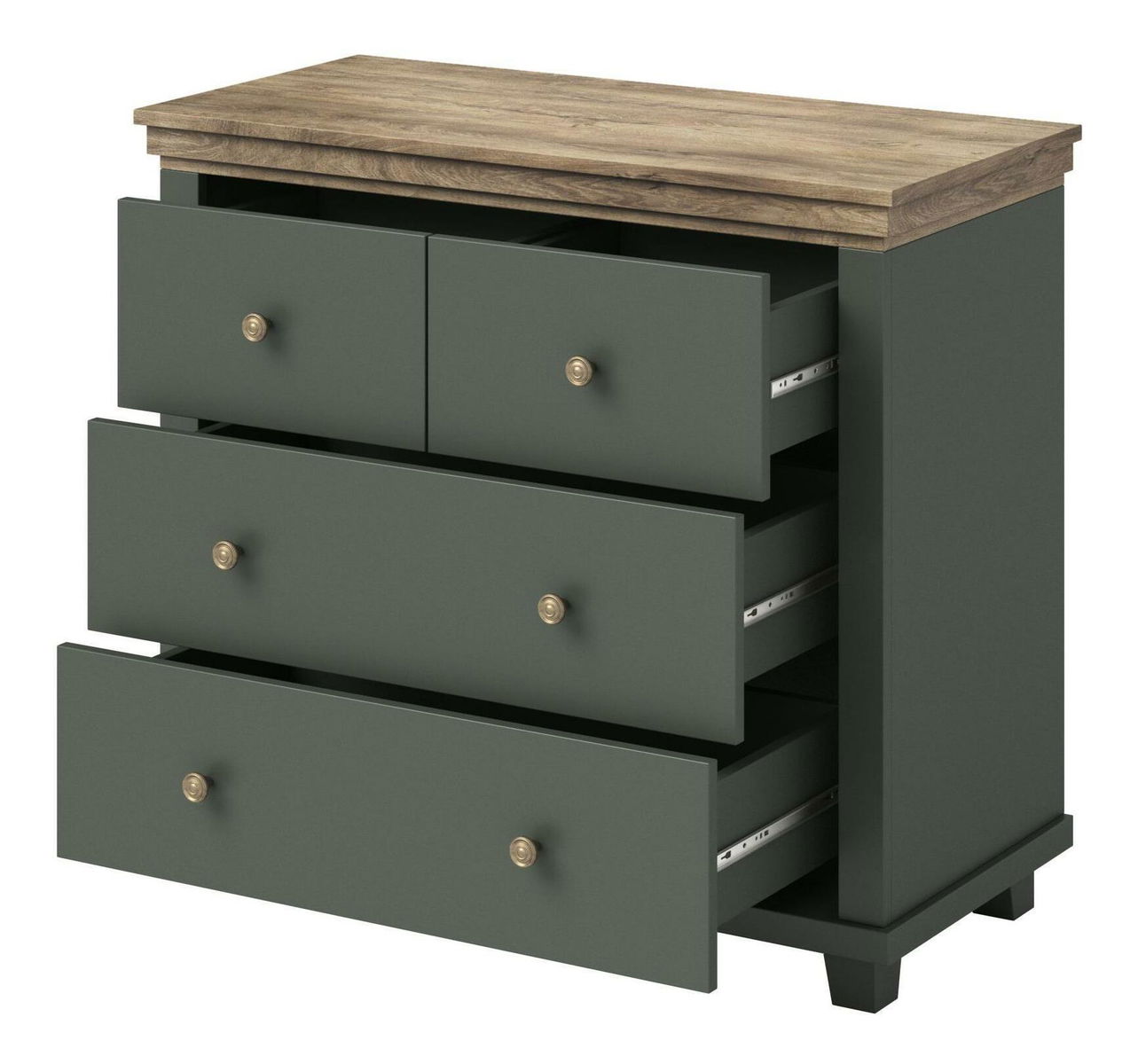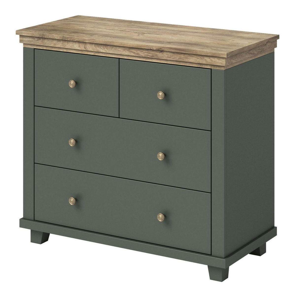 ZobrazitTato komoda Elvina S Typ 27 v zelené barvě a dub lefkas tmavý je výjimečným kouskem, který by mohl být skvělým doplňkem do vaší ložnice, obývacího pokoje nebo kanceláře Vysoká 81 cm a hluboká 42 cm, tato komoda je velikosti, která poskytuje spoustu úložného prostoru . Rozdělená čtyřmi zásuvkami, tato komoda má dostatek místa na uložení vašich věcí, zatímco její fóliovaná dřevotříska zajišťuje, že bude odolná. Materiál úchytek je plastový, což zajišťuje trvanlivější a praktičtější funkčnost pro každodenní používání.
