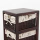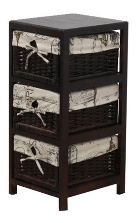 Komoda v pěkném rustikálním stylu, která je zároveň praktickým pomocníkem. Do tří proutěných košíků ozdobených mašlí si můžete odložit různé drobnosti. Bude velmi pěkným doplňkem do předsíní, ložnic nebo i koupelen. Barevné provedení komody je tmavě hnědá a béžová.