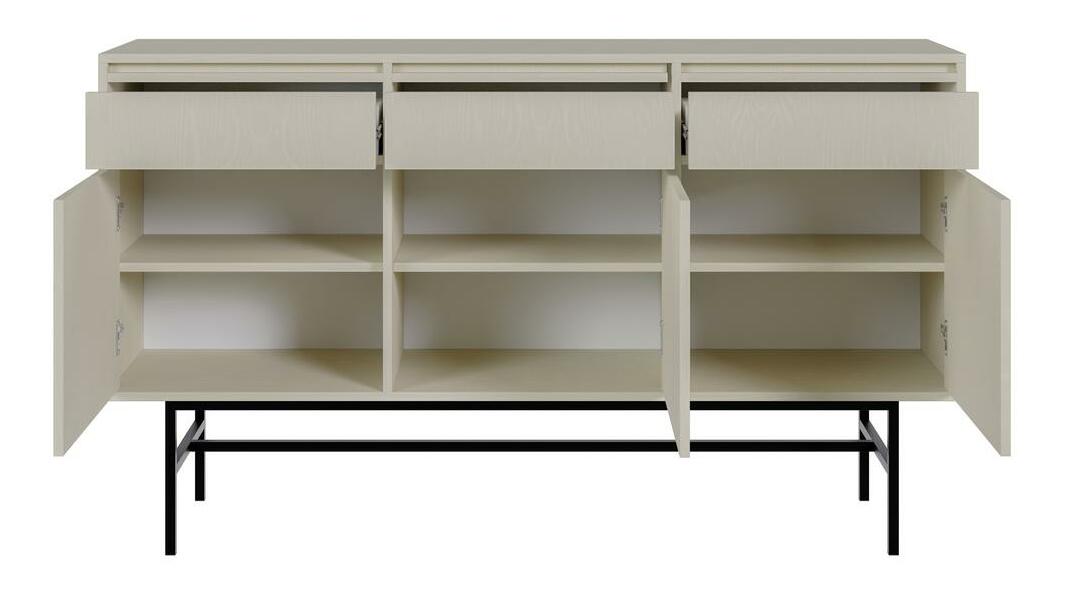 Hledáte alternativu k módním lamelám? Oceňujete minimalismus ve svém interiéru? Pokud ano, určitě se vám bude líbit kolekce nábytku Komoda je spojením designu a funkčnosti. Univerzální tvar nábytku je umístěn na vysoké ocelové základně, která dodává formě vizuální lehkost. Vnitřek je rozdělen do tří uzavřených skříněk a tří praktických zásuvek – toto členění vám umožní uspořádat uložené věci podle vašich preferencí a zachovat v nich řád. Výhodou nábytku je jeho široká deska, která může poskytnout další prostor pro uložení drobností. v ozdobných boxech, jakož i na vystavení rodinných suvenýrů Piaskowy), podstavec: : prášek lakovaná ocel, hrany chráněné 0,8 cm ABS hranou, která zaručuje zpevnění proti mechanickému poškození, komoda vybavená systémem push to open, nemá systém tichého zavírání, barva: písková béžová.