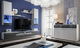Moderní komoda k obývací stěně Evora. Je vyrobena z kvalitního lamina. Korpus i dvířka jsou v barvě alpská bílá s leskem v kombinaci s šedou lesklou barvou antracit.