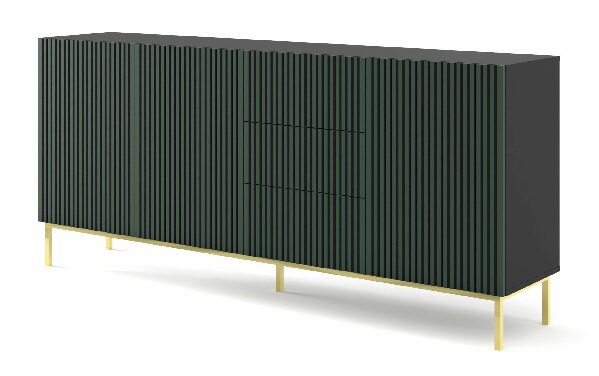 Komoda F 3D3S 200 Rowanna (černá + tmavě zelená + zlatá)