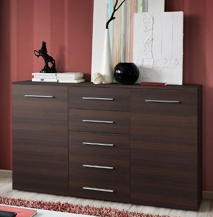 Komoda Fox je vyrobena jako doplněk do obývacích pokojů, ložnic či pracoven. Je třídílná, přičemž po stranách je úložný prostor se dvěma policemi, který je uzavřen dvířky. Ve středu se nachází pět zásuvek. Celkový design podtrhují elegantní podlouhlé úchyty. Vrchní část komody může sloužit jako odkládací prostor na dekorační předměty. Díky množství barevných provedení je možné ji snadno kombinovat s ostatním nábytkem v místnosti.