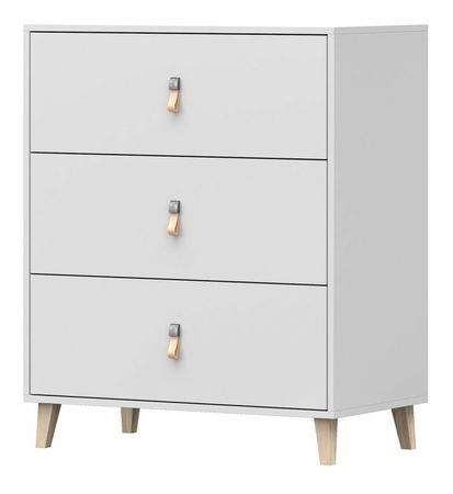 Komoda Figu ve skandinávském stylu je ideálním kusem nábytku do studentského pokoje. Vnější i vnitřní části jsou vyrobeny z 16 mm silné dřevotřísky, což zaručuje pevnost a odolnost komody. ABS hrany o tloušťce 0,5 mm přispívají k její estetické a praktické stránce. Úchyty jsou vyrobeny z kůže a mají tvar poutka, což dodává komodě stylový vzhled a zároveň zajišťuje pohodlné otevírání zásuvek. Dřevěné nožičky o výšce 14 cm poskytují komodě stabilní oporu a zároveň umožňují snadné čištění pod ní. Komoda má tři šuplíky, které poskytují dostatek úložného prostoru pro knihy, školní potřeby nebo osobní věci. Kuličkové vedení zásuvek zajišťuje hladké a tiché otevírání a zavírání. Tento kus nábytku kombinuje funkčnost, odolnost a skandinávskou estetiku, což je ideální pro každý studentský pokoj.