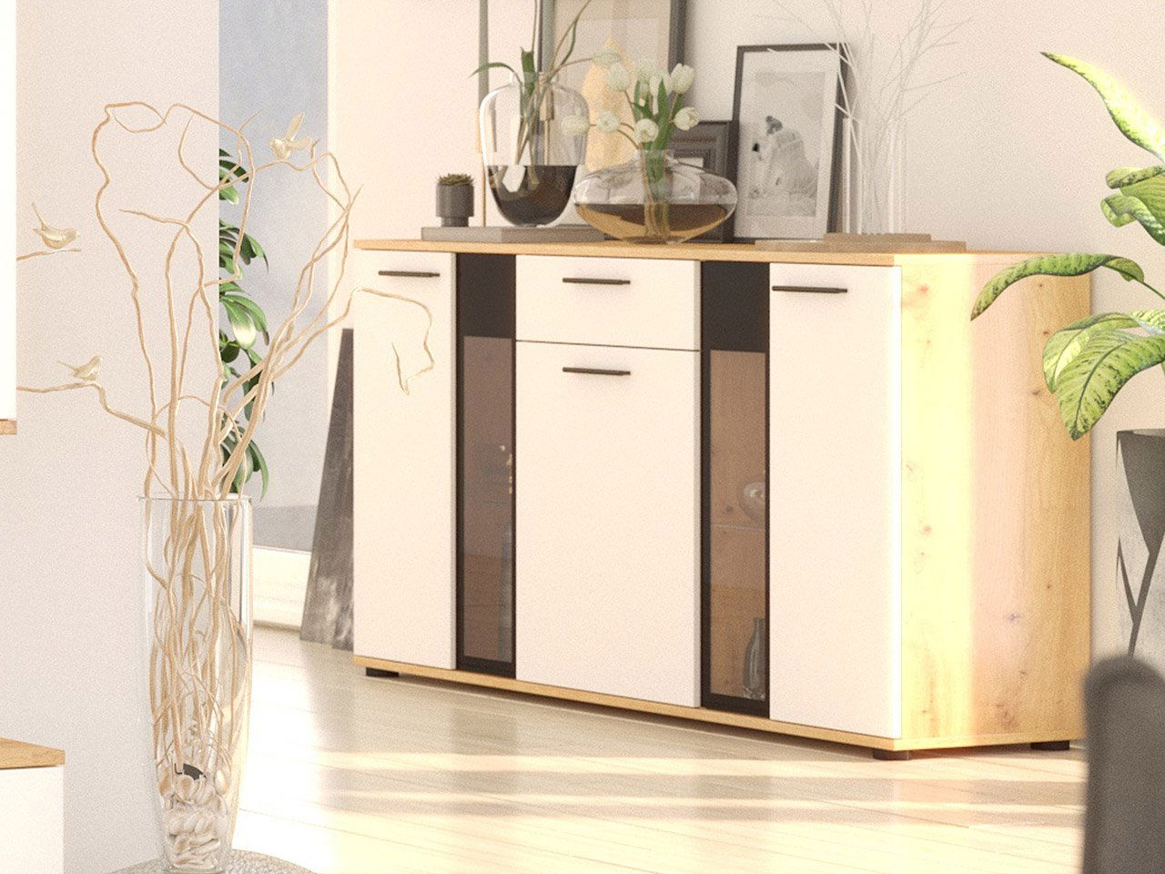 Komoda Fletcher (dub artisan + bílá) (osvětlení LED)