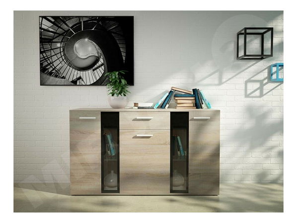 ZobrazitStylová komoda je jistě dekorativním prvkem každé místnosti. Kromě krásného vzhledu je také velice praktická a umožňuje pohodlné skladování velkého množství předmětů. Zakryté části poskytují příležitost ukrýt předměty, které nechceme ukazovat, zatímco prosklené fragmenty umožňují vystavit knihy a jiné dekorativní předměty. Komoda byla vyrobena z laminované dřevotřískové desky, která je odolná vůči poškrábání. Na ohraňování nábytku byla částečně použita PVC hranovací páska. V kombinaci s jiným nábytkem může vytvořit jedinečné zařízení ve všech pokojích.