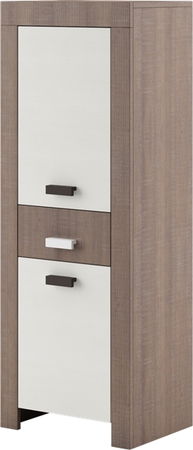 Úzká komoda s dvířky hodu a dolů a jednou zásuvkou uprostřed.
