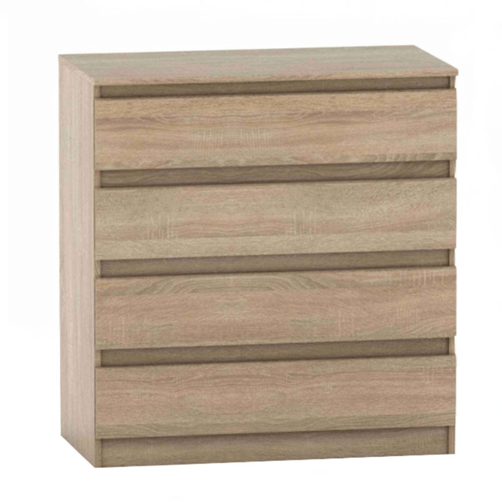Komoda Hannah New 04 (dub sonoma) je vynikající nábytek pro ty, kdo hledají krásný a praktický způsob, jak organizovat své věci. S výškou 95,4 cm a hloubkou 49 cm nabízí dostatek místa pro ukládání oblečení, knih, dokumentů a dalších věcí. Jeho moderní design a dub sonoma barva odpovídají dnešním trendům a snadno se přizpůsobí kterékoli místnosti vaší domácnosti. Komoda má čtyři zásuvky s kovovými výsuvnými mechanismy, což zaručuje snadné a plynulé otevírání a zavírání. Jeho robustní konstrukce zajišťuje, že bude sloužit po mnoho let. Komoda Hannah New 04 (dub sonoma) je vynikající volbou pro ty, kdo hledají kvalitní a praktický nábytek pro svůj domov.