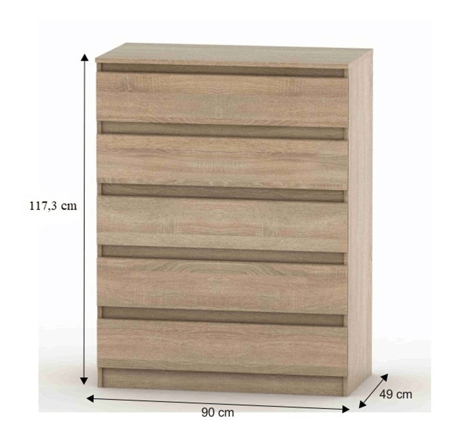 Komoda Hannah New 05 (Dub Sonoma) je elegantní a moderně zařízený nábytek, který se dokonale hodí do každého interiéru. S výškou 117,3 cm a hloubkou 49 cm poskytuje dostatek úložného prostoru pro vaše věci. Tato komoda disponuje čtyřmi zásuvkami, které jsou vyrobeny z kvalitního materiálu a mají dostatečný prostor pro uložení všech věcí, které potřebujete mít k dispozici v každé chvíli. Dub Sonoma je moderní design, který skvěle ladí s ostatními kusy nábytku. Pokud hledáte spolehlivý, moderně zařízený a praktický nábytek, je Komoda Hannah New 05 (Dub Sonoma) tou správnou volbou pro vás.