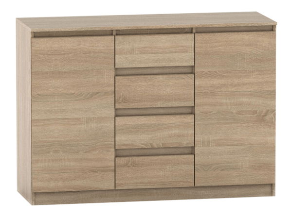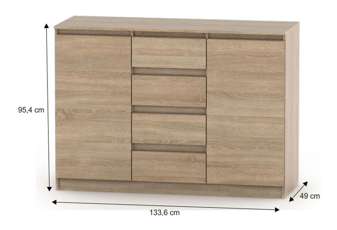 Komoda Hannah New 10 (dub sonoma) o výšce 95,4 cm a hloubce 49 cm je ideálním doplňkem každého pokoje. Je vyrobena z kvalitního dřeva dub sonoma, což zajišťuje dlouhou životnost a odolnost. Komoda má celkem čtyři zásuvky, což poskytuje tak potřebný úložný prostor pro vaše věci. Její moderní design a tmavá barva dokonale zapadne do každého interiéru a dodá mu útulnou atmosféru. Komoda Hannah New 10 je skvělou volbou pro lidi, kteří hledají kvalitní a praktický nábytek pro svůj domov.