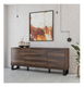 Elegantní TV stolek je rozdělen na tři části. Po stranách má dvě vykřikl a ve střední části je police na umístění audio / video techniky.