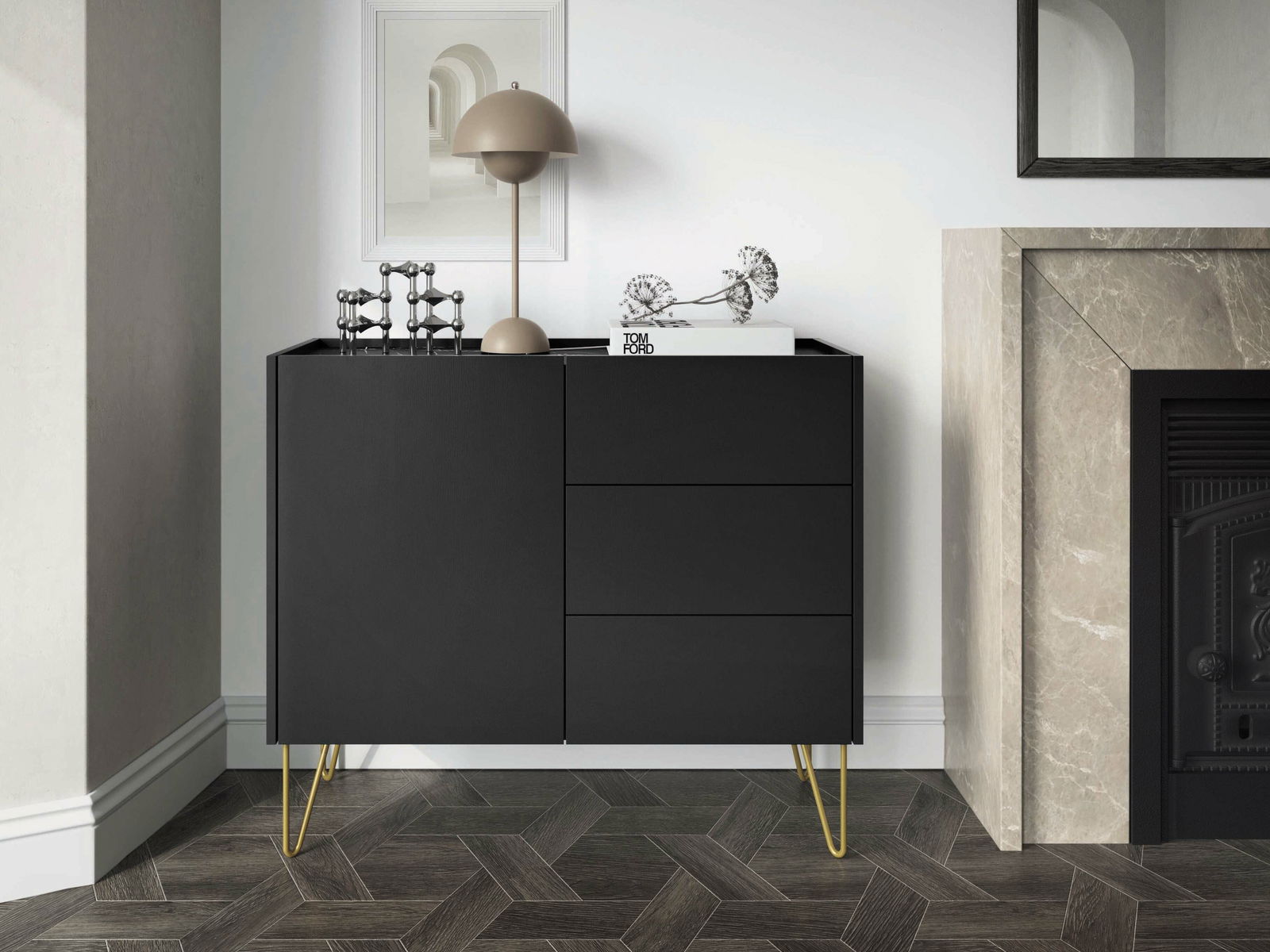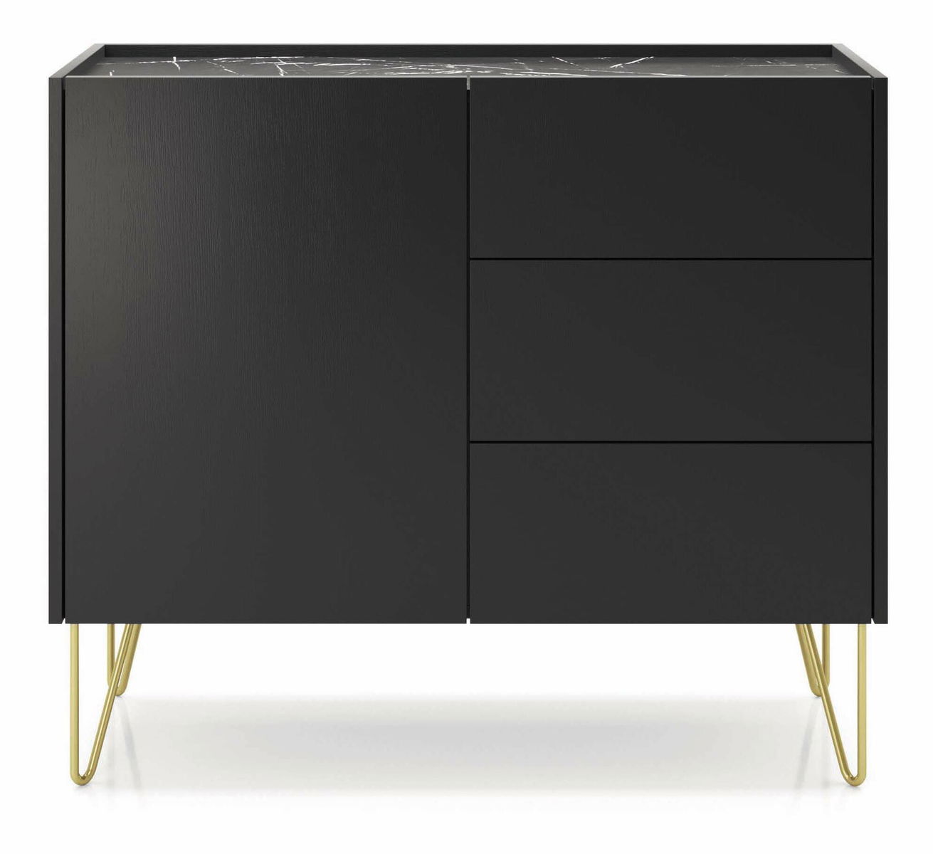 Komoda Harvest KSZ97 (grafit černý + mramor black royal + zlatá)