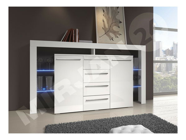 ZobrazitKomoda určitě zaujme každého. V zasklených částech mohou být uloženy knihy nebo jiné dekorace. LED osvětlení zaručeně dodá neobvyklý efekt. Pro lepší přizpůsobení se individuálním potřebám zákazníka je komoda k dispozici ve 4 barvách, takže dokonale vyhovuje každému vkusu. Je třeba zdůraznit, že kombinace matných nábytkových skříněk a lesklých předních částí dává komodě osobitý styl. Povrch laminované desky je odolný proti poškrábání.