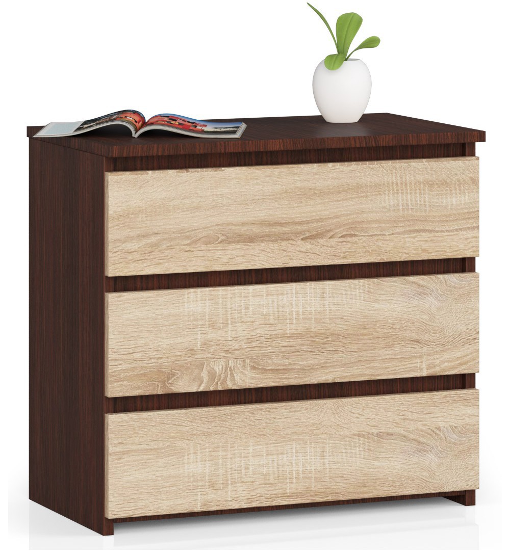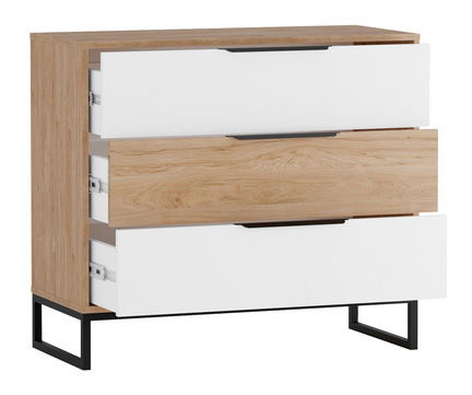 Objevte mimořádnou praktičnost, kterou nabízí komoda Irawadi K3SZ IA03. Tři prostorné výsuvné přihrádky poskytují dostatek místa pro uložení nejrůznějších předmětů. Své místo si ideálně najde v obývacím pokoji, ložnici i kanceláři. Je také skvělým doplňkem do pokoje mladého člověka. Univerzální barevné provedení podtrhuje dobré vybavení bytu. Módní barevná kombinace předních ploch se dokonale snoubí s černými prvky, které celku dodávají moderní charakter. Komoda zvednutá kovovými nožičkami pomáhá udržovat pořádek kolem ní i pod ní.