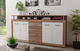 Komoda Jachim - Juno je vyrobena z laminované DTD v barevné kombinaci dřeva švestka s bílou. Úložný prostor je rozdělen na dvě skříňky s dvěma dvířky, čtyři zásuvky a vyvýšenou část pro odkládání dekoračních předmětů. Doporučuje se kombinovat s obývací stěnou Jachim - Juno.