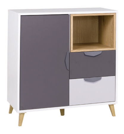 - Komoda Juna 9 (bílá + grafit + šedá + dub lefkas)
