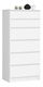 Komoda Kalista III se vyznačuje minimalistickým designem, funkčností, komfortem používání a vysokou estetikou. Je vyrobena z kvalitní laminované desky o tloušťce 16 milimetrů, která je odolná vůči poškození. Je k dispozici v našem internetovém obchodu za mimořádně konkurenční cenu. Korpus komody sestává z matné bílé laminované desky. Čela zásuvek jsou vyrobena z 19 mm MDF vysokého lesku. Zásuvky se pohybují na kovových válečkových vodítkách. Horní část, boky a přední část jsou pokryty ABS lemováním, zajišťují tak vysokou ochranu proti poškození. Dostupná ve více barevných provedeních.