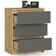 ZobrazitKomoda Kalista II se vyznačuje minimalistickým designem, funkčností, komfortem používání a vysokou estetikou. Je vyrobena z kvalitní laminované desky o tloušťce 16 milimetrů, která je odolná vůči poškození. Je k dispozici v našem internetovém obchodu za mimořádně konkurenční cenu. Korpus komody sestává z matné bílé laminované desky. Čela zásuvek jsou vyrobena z 19 mm MDF vysokého lesku. Zásuvky se pohybují na kovových válečkových vodítkách. Hrany jsou pokryty ABS lemováním, zajišťují tak vysokou ochranu proti poškození. Dostupná ve více barevných provedeních.