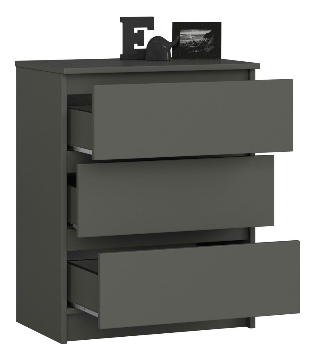 ZobrazitKomoda Kalista II se vyznačuje minimalistickým designem, funkčností, komfortem používání a vysokou estetikou. Je vyrobena z kvalitní laminované desky o tloušťce 16 milimetrů, která je odolná vůči poškození. Je k dispozici v našem internetovém obchodu za mimořádně konkurenční cenu. Korpus komody sestává z matné bílé laminované desky. Čela zásuvek jsou vyrobena z 19 mm MDF vysokého lesku. Zásuvky se pohybují na kovových válečkových vodítkách. Hrany jsou pokryty ABS lemováním, zajišťují tak vysokou ochranu proti poškození. Dostupná ve více barevných provedeních.