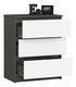 ZobrazitKomoda Kalista II se vyznačuje minimalistickým designem, funkčností, komfortem používání a vysokou estetikou. Je vyrobena z kvalitní laminované desky o tloušťce 16 milimetrů, která je odolná vůči poškození. Je k dispozici v našem internetovém obchodu za mimořádně konkurenční cenu. Korpus komody sestává z matné bílé laminované desky. Čela zásuvek jsou vyrobena z 19 mm MDF vysokého lesku. Zásuvky se pohybují na kovových válečkových vodítkách. Hrany jsou pokryty ABS lemováním, zajišťují tak vysokou ochranu proti poškození. Dostupná ve více barevných provedeních.
