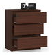 ZobrazitKomoda Kalista II se vyznačuje minimalistickým designem, funkčností, komfortem používání a vysokou estetikou. Je vyrobena z kvalitní laminované desky o tloušťce 16 milimetrů, která je odolná vůči poškození. Je k dispozici v našem internetovém obchodu za mimořádně konkurenční cenu. Korpus komody sestává z matné bílé laminované desky. Čela zásuvek jsou vyrobena z 19 mm MDF vysokého lesku. Zásuvky se pohybují na kovových válečkových vodítkách. Hrany jsou pokryty ABS lemováním, zajišťují tak vysokou ochranu proti poškození. Dostupná ve více barevných provedeních.