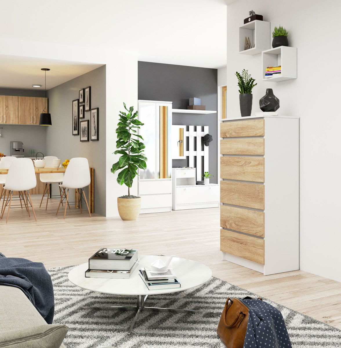 Komoda Kalista III (bílá + dub sonoma)