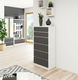 Komoda Kalista III se vyznačuje minimalistickým designem, funkčností, komfortem používání a vysokou estetikou. Je vyrobena z kvalitní laminované desky o tloušťce 16 milimetrů, která je odolná vůči poškození. Je k dispozici v našem internetovém obchodu za mimořádně konkurenční cenu. Korpus komody sestává z matné bílé laminované desky. Čela zásuvek jsou vyrobena z 19 mm MDF vysokého lesku. Zásuvky se pohybují na kovových válečkových vodítkách. Horní část, boky a přední část jsou pokryty ABS lemováním, zajišťují tak vysokou ochranu proti poškození. Dostupná ve více barevných provedeních.
