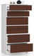 Komoda Kalista III se vyznačuje minimalistickým designem, funkčností, komfortem používání a vysokou estetikou. Je vyrobena z kvalitní laminované desky o tloušťce 16 milimetrů, která je odolná vůči poškození. Je k dispozici v našem internetovém obchodu za mimořádně konkurenční cenu. Korpus komody sestává z matné bílé laminované desky. Čela zásuvek jsou vyrobena z 19 mm MDF vysokého lesku. Zásuvky se pohybují na kovových válečkových vodítkách. Horní část, boky a přední část jsou pokryty ABS lemováním, zajišťují tak vysokou ochranu proti poškození. Dostupná ve více barevných provedeních.