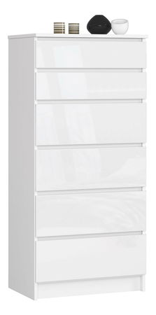 Komoda Kalista III se vyznačuje minimalistickým designem, funkčností, komfortem používání a vysokou estetikou. Je vyrobena z kvalitní laminované desky o tloušťce 16 milimetrů, která je odolná vůči poškození. Je k dispozici v našem internetovém obchodu za mimořádně konkurenční cenu. Korpus komody sestává z matné bílé laminované desky. Čela zásuvek jsou vyrobena z 19 mm MDF vysokého lesku. Zásuvky se pohybují na kovových válečkových vodítkách. Horní část, boky a přední část jsou pokryty ABS lemováním, zajišťují tak vysokou ochranu proti poškození. Dostupná ve více barevných provedeních.