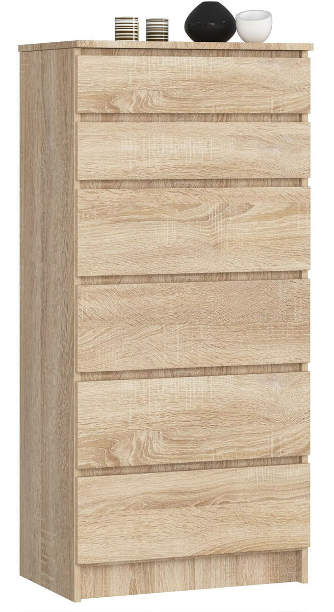 ZobrazitKomoda Kalista III se vyznačuje minimalistickým designem, funkčností, komfortem používání a vysokou estetikou. Je vyrobena z kvalitní laminované desky o tloušťce 16 milimetrů, která je odolná vůči poškození. Je k dispozici v našem internetovém obchodu za mimořádně konkurenční cenu. Korpus komody sestává z matné bílé laminované desky. Čela zásuvek jsou vyrobena z 19 mm MDF vysokého lesku. Zásuvky se pohybují na kovových válečkových vodítkách. Horní část, boky a přední část jsou pokryty ABS lemováním, zajišťují tak vysokou ochranu proti poškození. Dostupná ve více barevných provedeních.