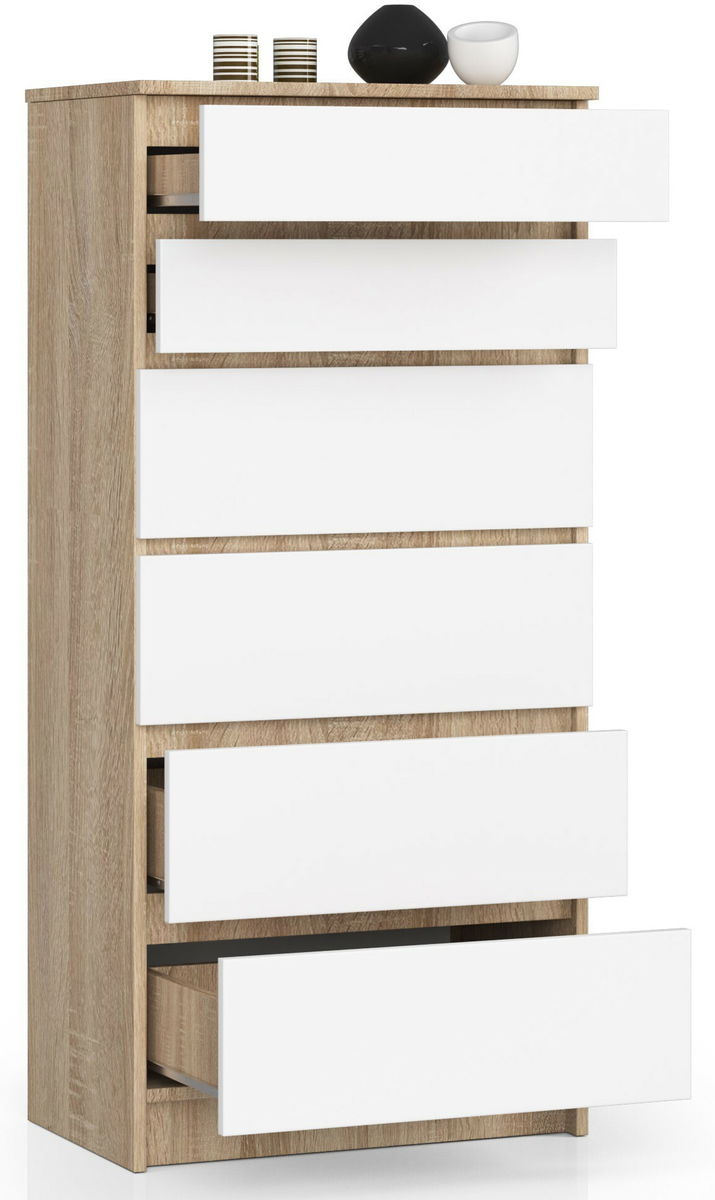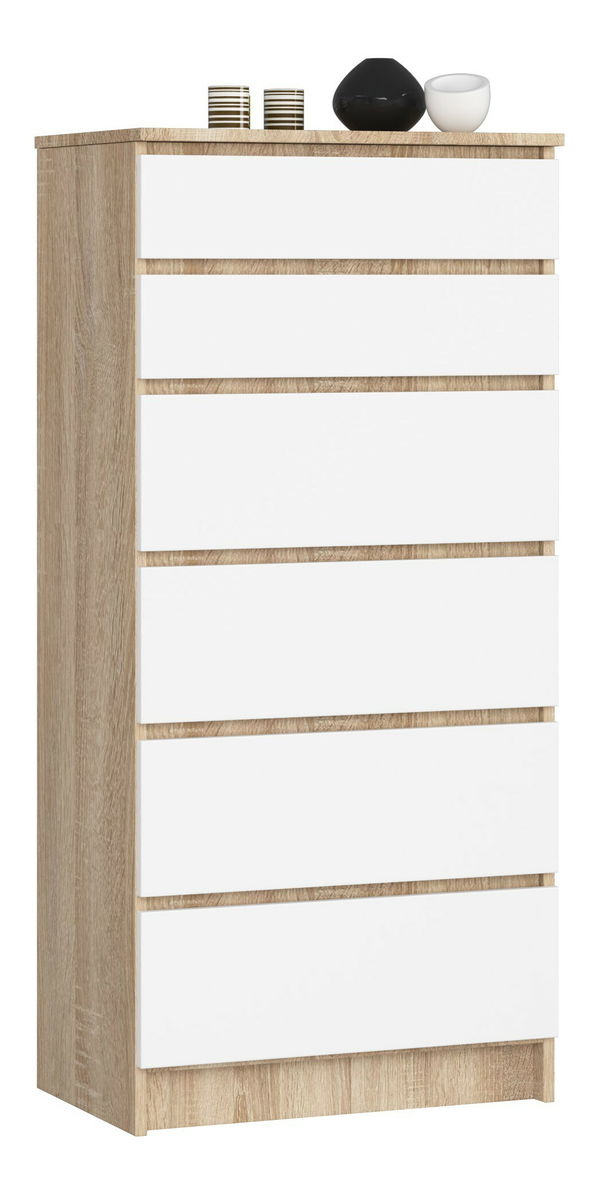 ZobrazitKomoda Kalista III se vyznačuje minimalistickým designem, funkčností, komfortem používání a vysokou estetikou. Je vyrobena z kvalitní laminované desky o tloušťce 16 milimetrů, která je odolná vůči poškození. Je k dispozici v našem internetovém obchodu za mimořádně konkurenční cenu. Korpus komody sestává z matné bílé laminované desky. Čela zásuvek jsou vyrobena z 19 mm MDF vysokého lesku. Zásuvky se pohybují na kovových válečkových vodítkách. Horní část, boky a přední část jsou pokryty ABS lemováním, zajišťují tak vysokou ochranu proti poškození. Dostupná ve více barevných provedeních.
