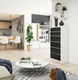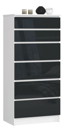 Komoda Kalista III se vyznačuje minimalistickým designem, funkčností, komfortem používání a vysokou estetikou. Je vyrobena z kvalitní laminované desky o tloušťce 16 milimetrů, která je odolná vůči poškození. Je k dispozici v našem internetovém obchodu za mimořádně konkurenční cenu. Korpus komody sestává z matné bílé laminované desky. Čela zásuvek jsou vyrobena z 19 mm MDF vysokého lesku. Zásuvky se pohybují na kovových válečkových vodítkách. Horní část, boky a přední část jsou pokryty ABS lemováním, zajišťují tak vysokou ochranu proti poškození. Dostupná ve více barevných provedeních.