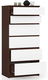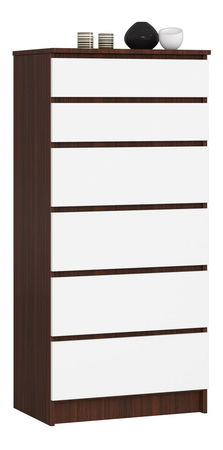 Komoda Kalista III se vyznačuje minimalistickým designem, funkčností, komfortem používání a vysokou estetikou. Je vyrobena z kvalitní laminované desky o tloušťce 16 milimetrů, která je odolná vůči poškození. Je k dispozici v našem internetovém obchodu za mimořádně konkurenční cenu. Korpus komody sestává z matné bílé laminované desky. Čela zásuvek jsou vyrobena z 19 mm MDF vysokého lesku. Zásuvky se pohybují na kovových válečkových vodítkách. Horní část, boky a přední část jsou pokryty ABS lemováním, zajišťují tak vysokou ochranu proti poškození. Dostupná ve více barevných provedeních.