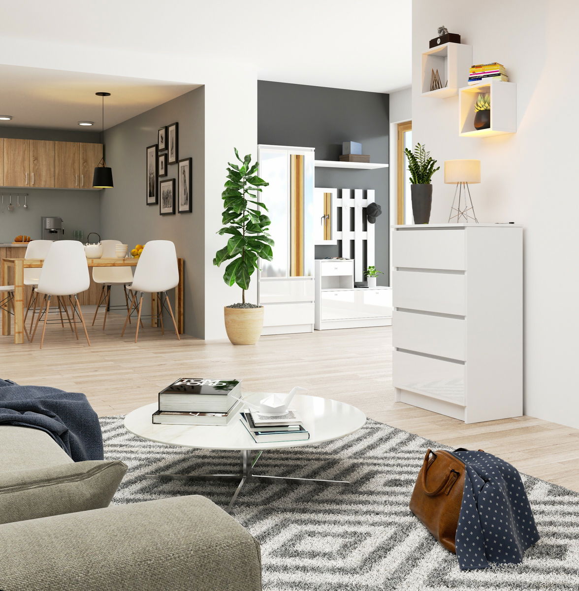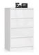 Komoda Kalista IV je určena pro lidi, kteří oceňují jednoduché tvary v nadčasové verzi. Tato krásná, pečlivě a solidně vyrobená komoda dokonale splní očekávání zákazníků, kteří se zaměřují především na kvalitu. Nábytek bude skvělým řešením do kanceláře nebo domácí pracovny, dobře poslouží iv předsíni, jídelně, obývacím pokoji, ložnici či pokoji pro teenagery. Komoda je vyrobena z vysoce kvalitní laminované desky, odolné vůči oděru. Čela zásuvek jsou vyrobena z laminované desky. Zásuvky se posouvají na kovových válečkových vodítkách. Hrany jsou pokryty ABS lemováním, zajišťují tak vysokou ochranu proti poškození. Dostupná i ve více barevných provedeních.