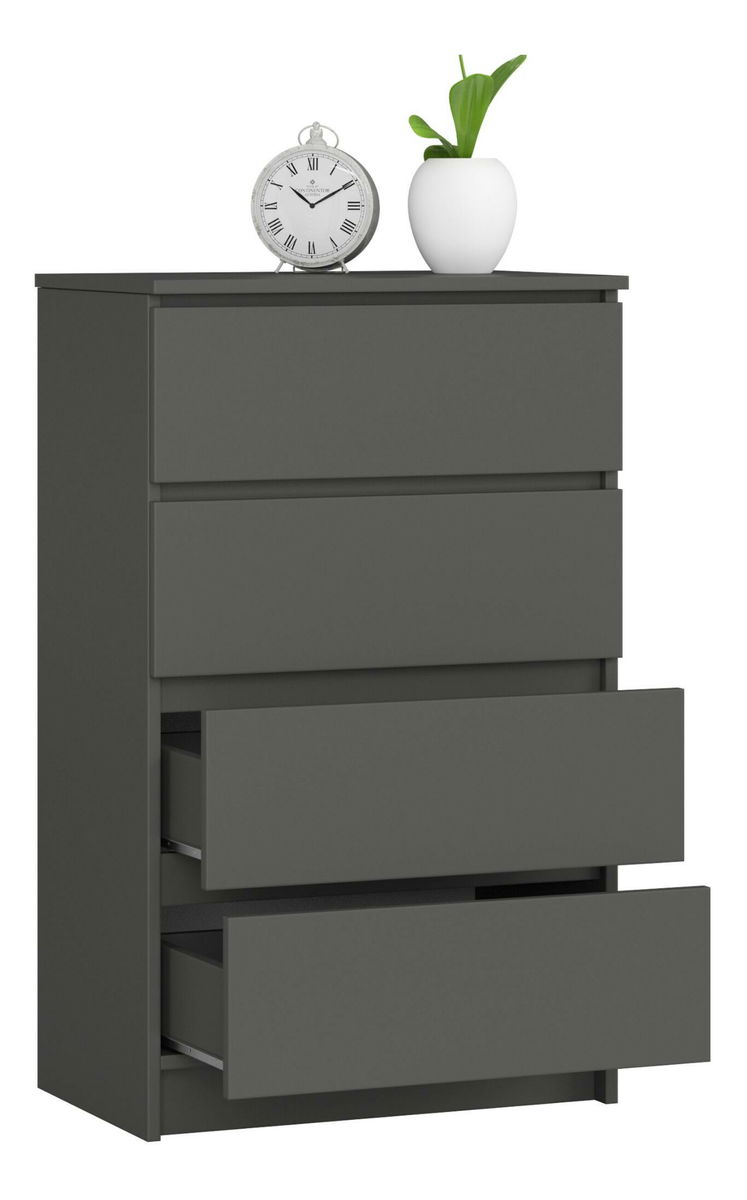 ZobrazitKomoda Kalista IV je určena pro lidi, kteří oceňují jednoduché tvary v nadčasové verzi. Tato krásná, pečlivě a solidně vyrobená komoda dokonale splní očekávání zákazníků, kteří se zaměřují především na kvalitu. Nábytek bude skvělým řešením do kanceláře nebo domácí pracovny, dobře poslouží iv předsíni, jídelně, obývacím pokoji, ložnici či pokoji pro teenagery. Komoda je vyrobena z vysoce kvalitní laminované desky, odolné vůči oděru. Čela zásuvek jsou vyrobena z laminované desky. Zásuvky se posouvají na kovových válečkových vodítkách. Hrany jsou pokryty ABS lemováním, zajišťují tak vysokou ochranu proti poškození. Dostupná i ve více barevných provedeních.