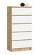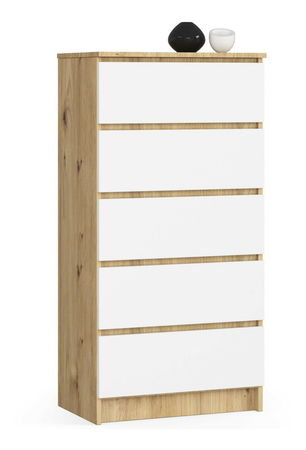 Komoda Kalista V se vyznačuje minimalistickým designem, funkčností, komfortem používání a vysokou estetikou. Je vyrobena z kvalitní laminované desky o tloušťce 16 milimetrů, která je odolná vůči poškození. Je k dispozici v našem internetovém obchodu za mimořádně konkurenční cenu. Korpus komody sestává z matné bílé laminované desky. Čela zásuvek jsou vyrobena z 19 mm MDF vysokého lesku. Disponuje až 5 zásuvkami, které se pohybují na kovových válečkových vodítkách. Hrany jsou pokryty ABS lemováním, zajišťují tak vysokou ochranu proti poškození. Dostupná ve více barevných provedeních.