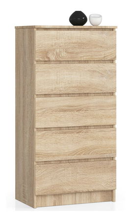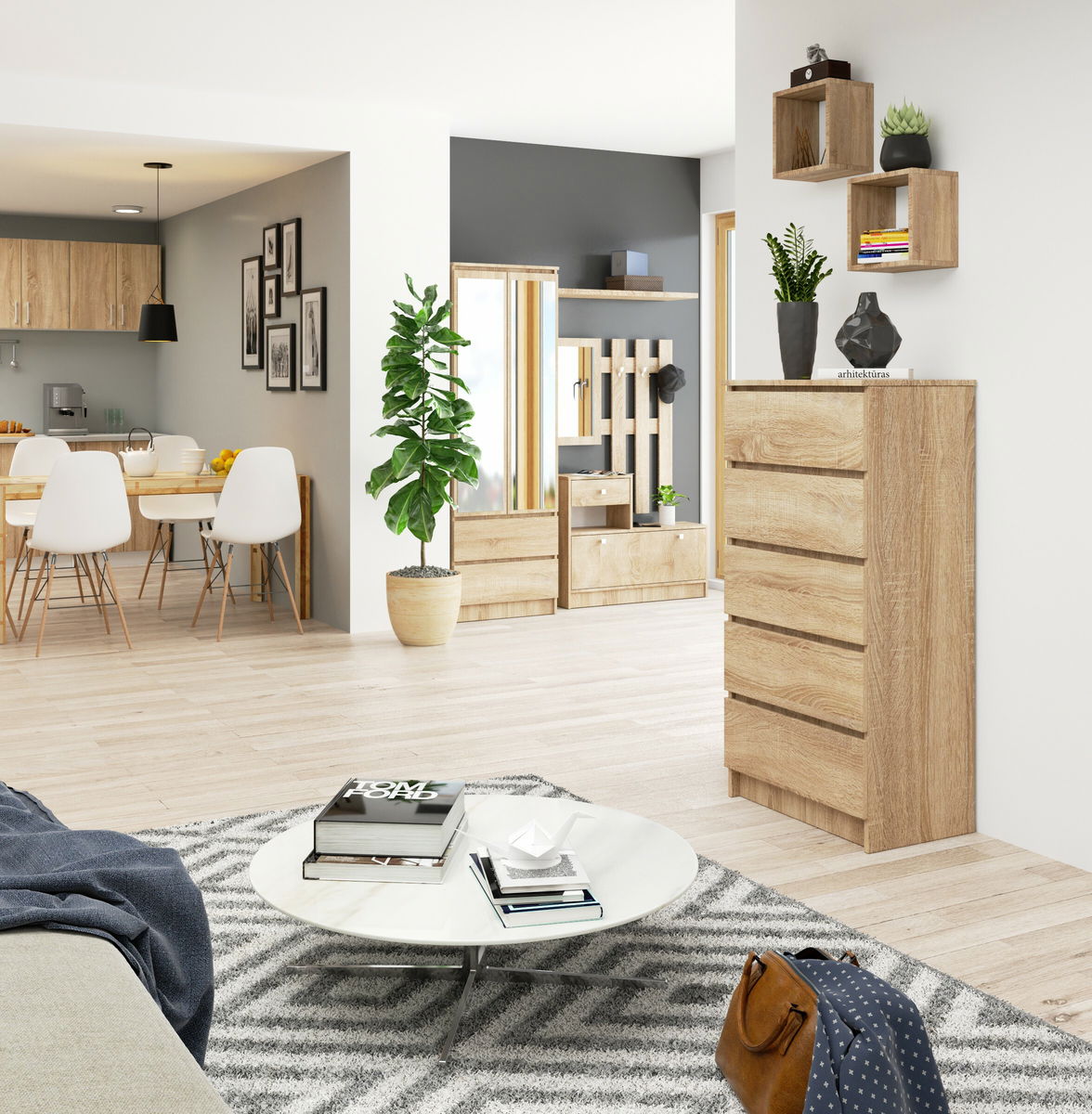 ZobrazitKomoda Kalista V se vyznačuje minimalistickým designem, funkčností, komfortem používání a vysokou estetikou. Je vyrobena z kvalitní laminované desky o tloušťce 16 milimetrů, která je odolná vůči poškození. Je k dispozici v našem internetovém obchodu za mimořádně konkurenční cenu. Korpus komody sestává z matné bílé laminované desky. Čela zásuvek jsou vyrobena z 19 mm MDF vysokého lesku. Disponuje až 5 zásuvkami, které se pohybují na kovových válečkových vodítkách. Hrany jsou pokryty ABS lemováním, zajišťují tak vysokou ochranu proti poškození. Dostupná ve více barevných provedeních.