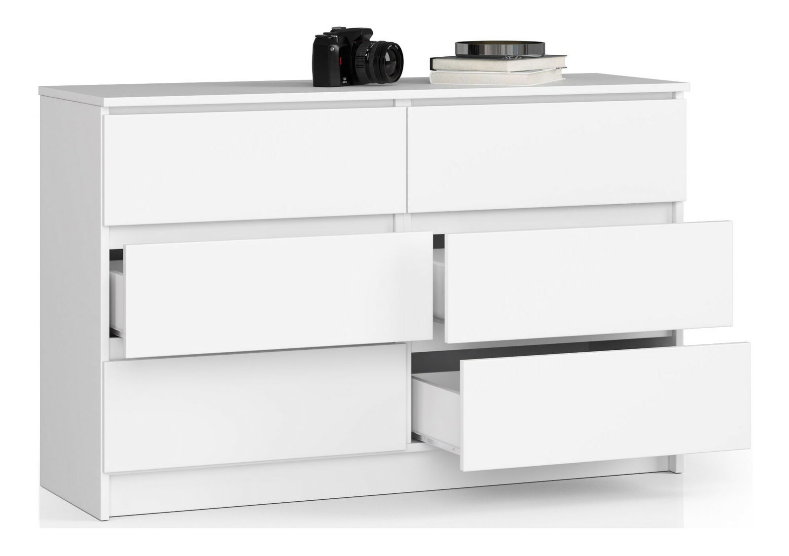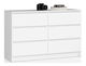 ZobrazitKomoda Kapil je vyrobena z kvalitní laminované desky o tloušťce 16 mm, která je odolná vůči poškození. Dostupná i ve více barevných provedeních. Komoda disponuje až 6 zásuvkami, které se pohybují na kovových válečkových vodítkách. Hrany jsou pokryty ABS lemováním, zajišťují tak vysokou ochranu proti poškození. Dostupná i ve více barevných provedeních.