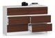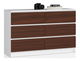 Komoda Kapil je vyrobena z kvalitní laminované desky o tloušťce 16 mm, která je odolná vůči poškození. Dostupná i ve více barevných provedeních. Komoda disponuje až 6 zásuvkami, které se pohybují na kovových válečkových vodítkách. Hrany jsou pokryty ABS lemováním, zajišťují tak vysokou ochranu proti poškození. Dostupná i ve více barevných provedeních.