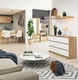 Komoda Kapil je vyrobena z kvalitní laminované desky o tloušťce 16 mm, která je odolná vůči poškození. Dostupná i ve více barevných provedeních. Komoda disponuje až 6 zásuvkami, které se pohybují na kovových válečkových vodítkách. Hrany jsou pokryty ABS lemováním, zajišťují tak vysokou ochranu proti poškození. Dostupná i ve více barevných provedeních.