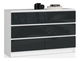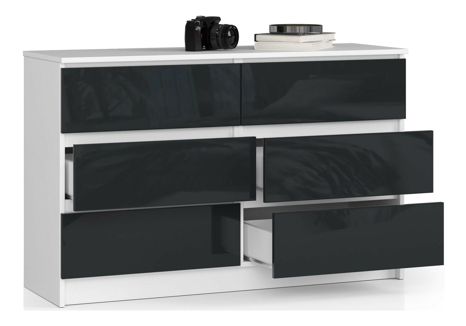 ZobrazitKomoda Kapil je vyrobena z kvalitní laminované desky o tloušťce 16 mm, která je odolná vůči poškození. Dostupná i ve více barevných provedeních. Komoda disponuje až 6 zásuvkami, které se pohybují na kovových válečkových vodítkách. Hrany jsou pokryty ABS lemováním, zajišťují tak vysokou ochranu proti poškození. Dostupná i ve více barevných provedeních.