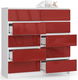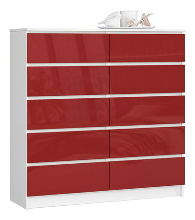 Komoda Kapil III je vyrobena z kvalitní laminované desky o tloušťce 16 mm, která je odolná vůči poškození. Dostupná i ve více barevných provedeních. Komoda disponuje až 10 zásuvkami, které se pohybují na kovových válečkových vodítkách. Hrany jsou pokryty ABS lemováním, zajišťují tak vysokou ochranu proti poškození. Dostupná i ve více barevných provedeních.