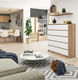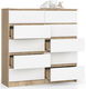 Komoda Kapil III je vyrobena z kvalitní laminované desky o tloušťce 16 mm, která je odolná vůči poškození. Dostupná i ve více barevných provedeních. Komoda disponuje až 10 zásuvkami, které se pohybují na kovových válečkových vodítkách. Hrany jsou pokryty ABS lemováním, zajišťují tak vysokou ochranu proti poškození. Dostupná i ve více barevných provedeních.