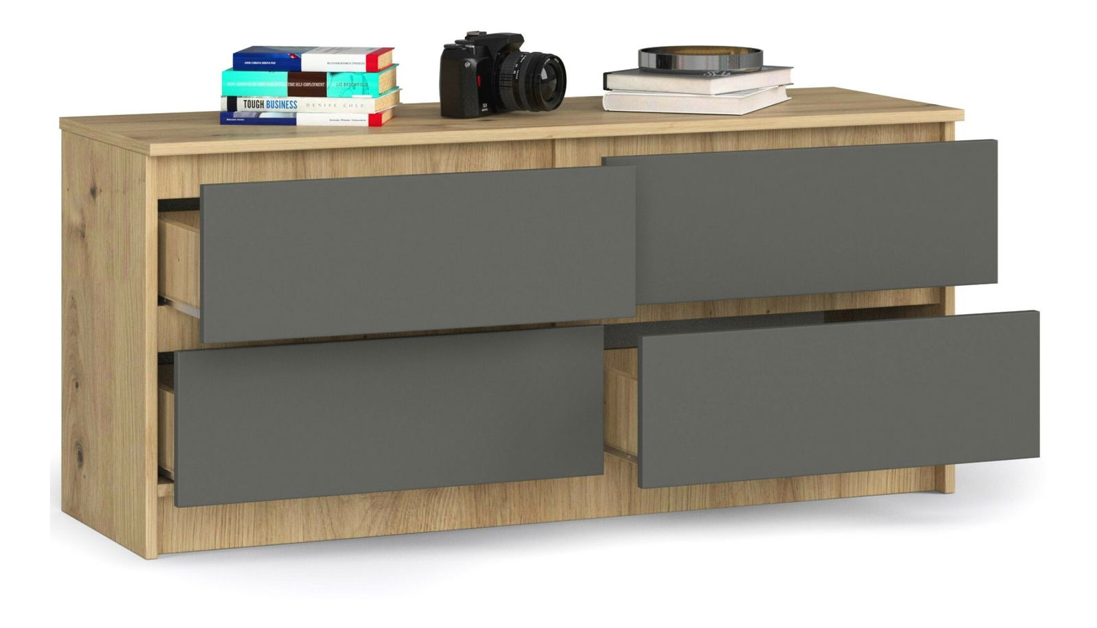 ZobrazitKomoda Kapil IV je skvělým doplňkem do vašeho interiéru. S výškou 55 cm, šířkou 120 cm a hloubkou 40 cm poskytuje dostatečně mnoho úložného prostoru pro vaše věci. Je vyrobena z kvalitního dubu artisan a šedého provedení, což dodává komodě elegantní a moderní vzhled. S jejím praktickým designem a pevnou konstrukcí je ideální pro uspořádání a organizaci vašeho domova. Komoda Kapil IV je nejen praktická, ale také stylová volba pro každý domov.
