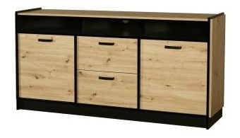 Komoda Kari 820 výška 89,8 cm hloubka 43 cm Dub artisan + Černá je moderní kus nábytku pro vaši domácnost. Tato komoda je vyrobena z laminované desky o tloušťce 16 mm, která zajišťuje její dlouhou životnost a odolnost vůči poškození. Přední část komody je také vyrobena z laminované desky o tloušťce 16 mm a doplněna je o ABS hrany, které zaručují, že komoda vypadá skvěle a je odolná vůči prasknutí. Komoda má výšku 89,8 cm a hloubku 43 cm, což z ní činí ideální kus nábytku do každé místnosti. Výhodou této komody je její moderní design v kombinaci s praktickým úložným prostorem, který vám umožní uskladnit různé věci a udržet vaši místnost uklizenou. Komoda Kari 820 výška 89,8 cm hloubka 43 cm Dub artisan + Černá je dokonalou volbou pro ty, kteří hledají kvalitní kus nábytku, který se bude hodit do každé místnosti.